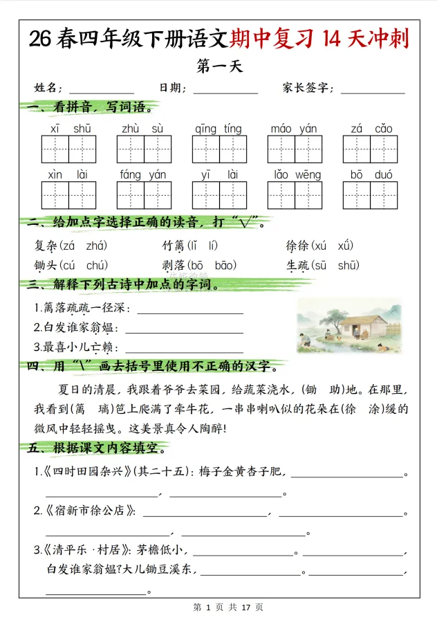 【小学资料】26春《语文期中复习14天冲刺》1-6年级下,电子版,可下载打印