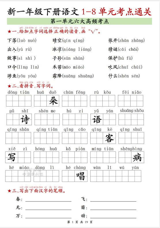 一年级下册语文|期中全覆盖式复习重点