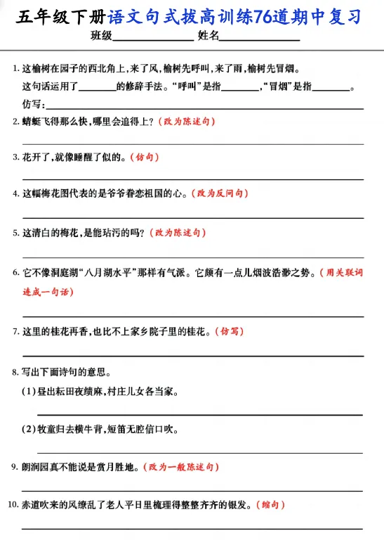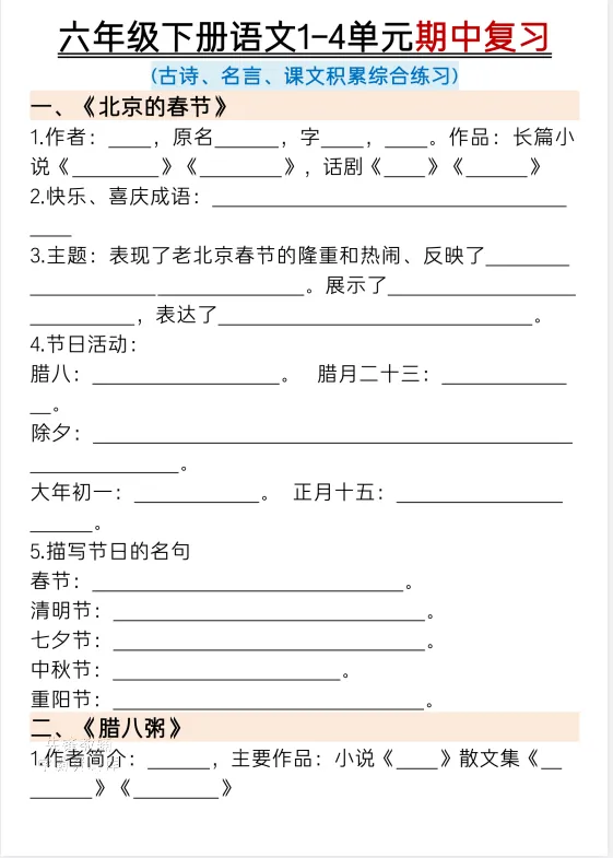 语文期中复习资料分享
