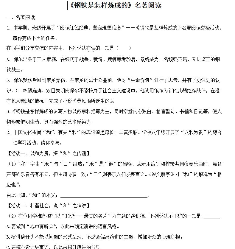 初中语文7-9年级上下册必读名著阅读复习资料(附电子版下载),考试原题就从这里出!