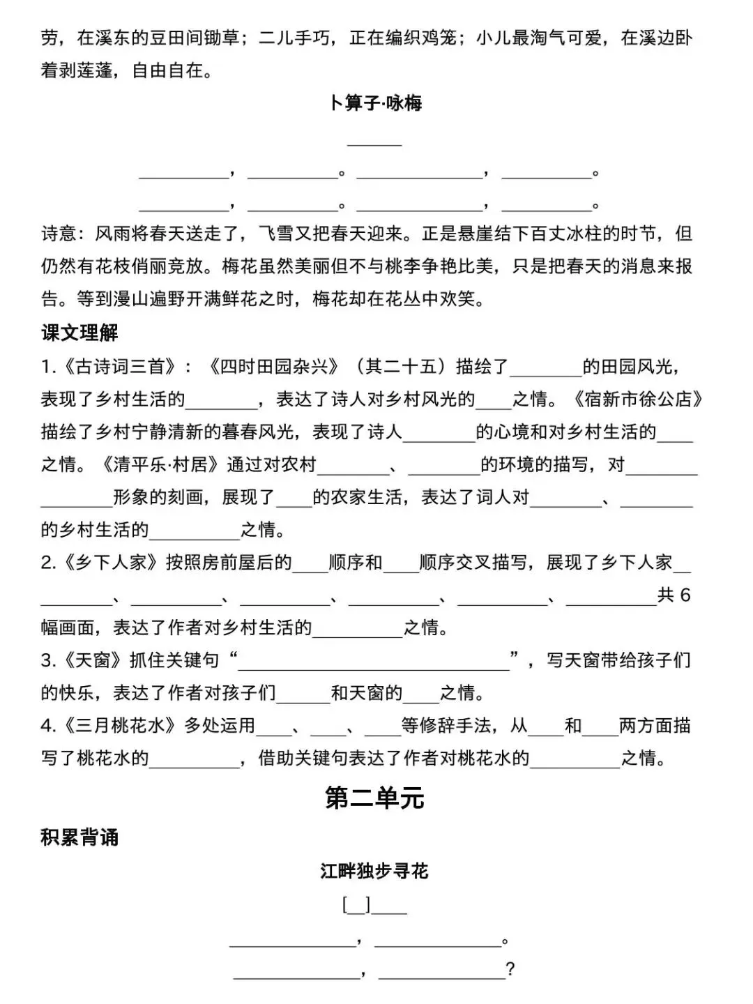 2026春五年级下册语文期中考试复习资料|完整电子版可打印