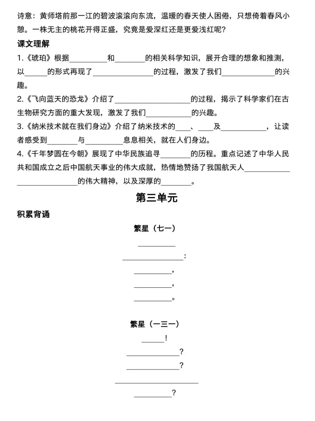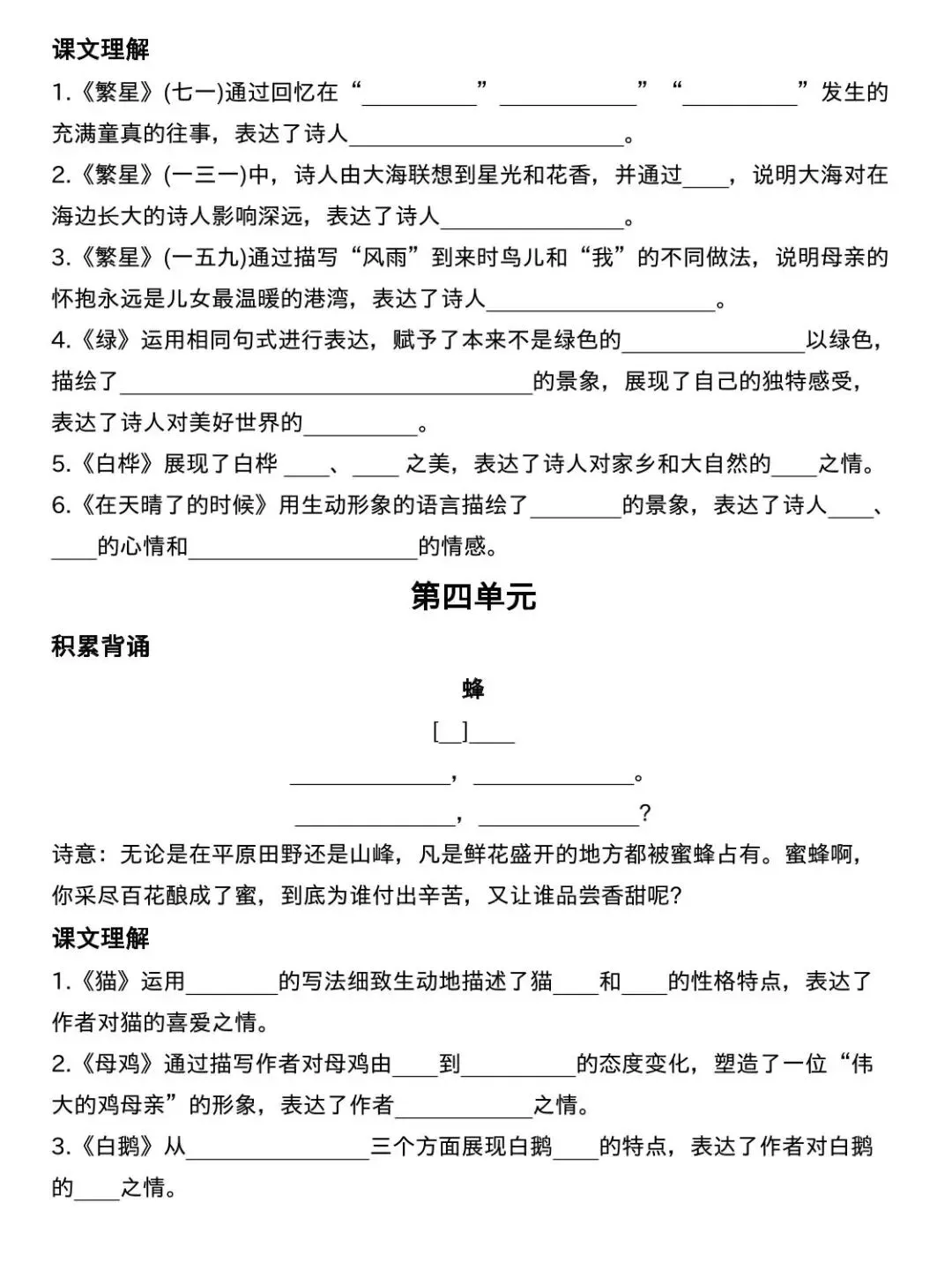 【期中资料】|26春三下语文期中复习1-4单元考点背记汇总(14页)(文末免费下载)