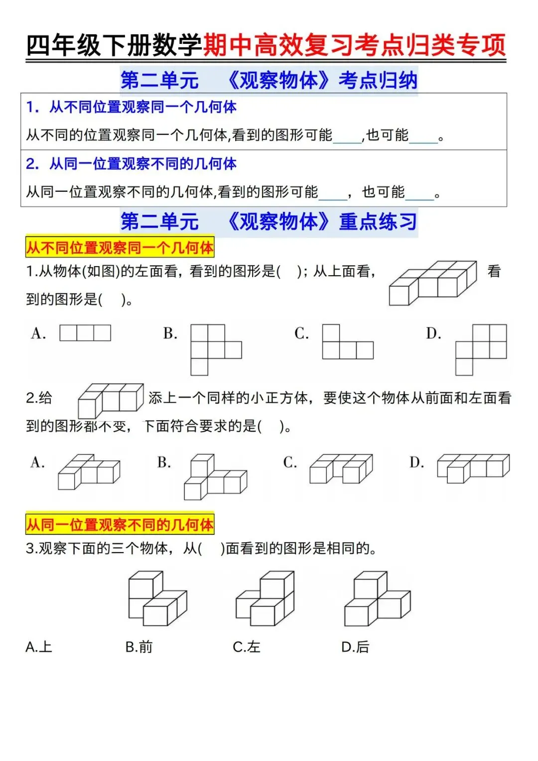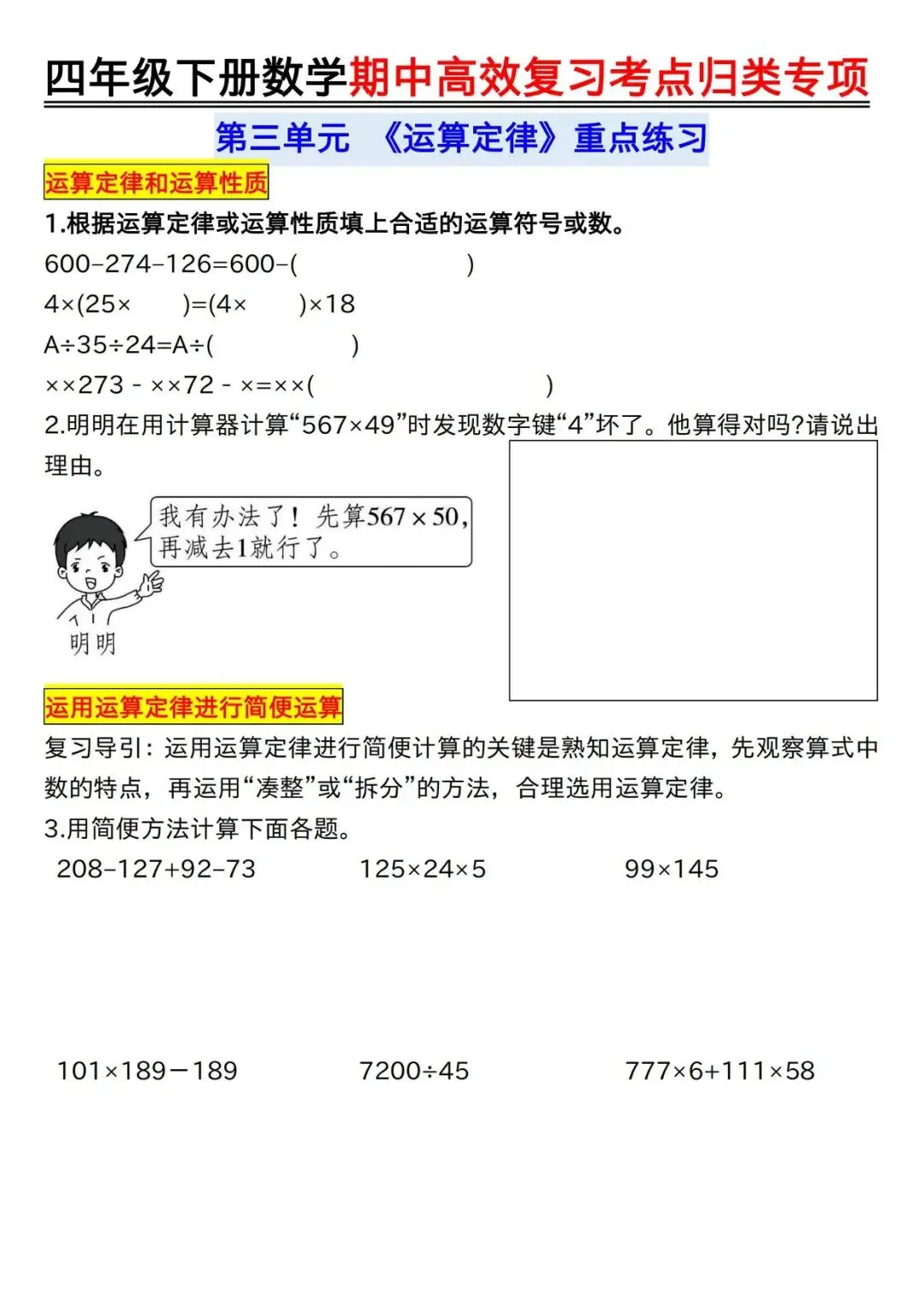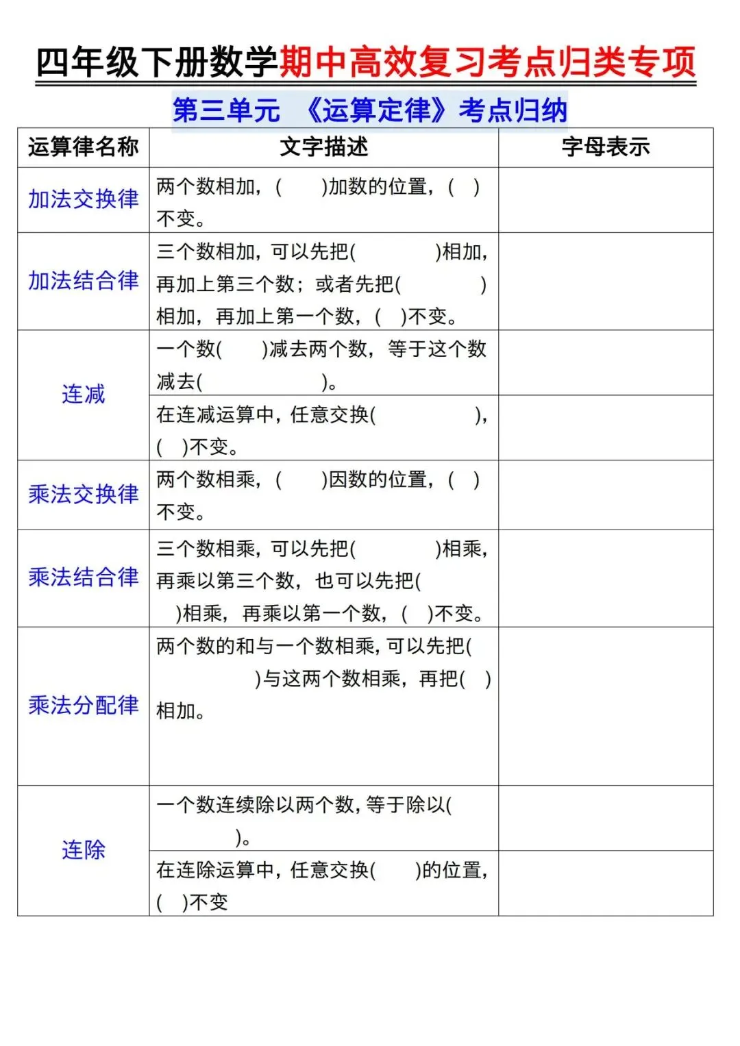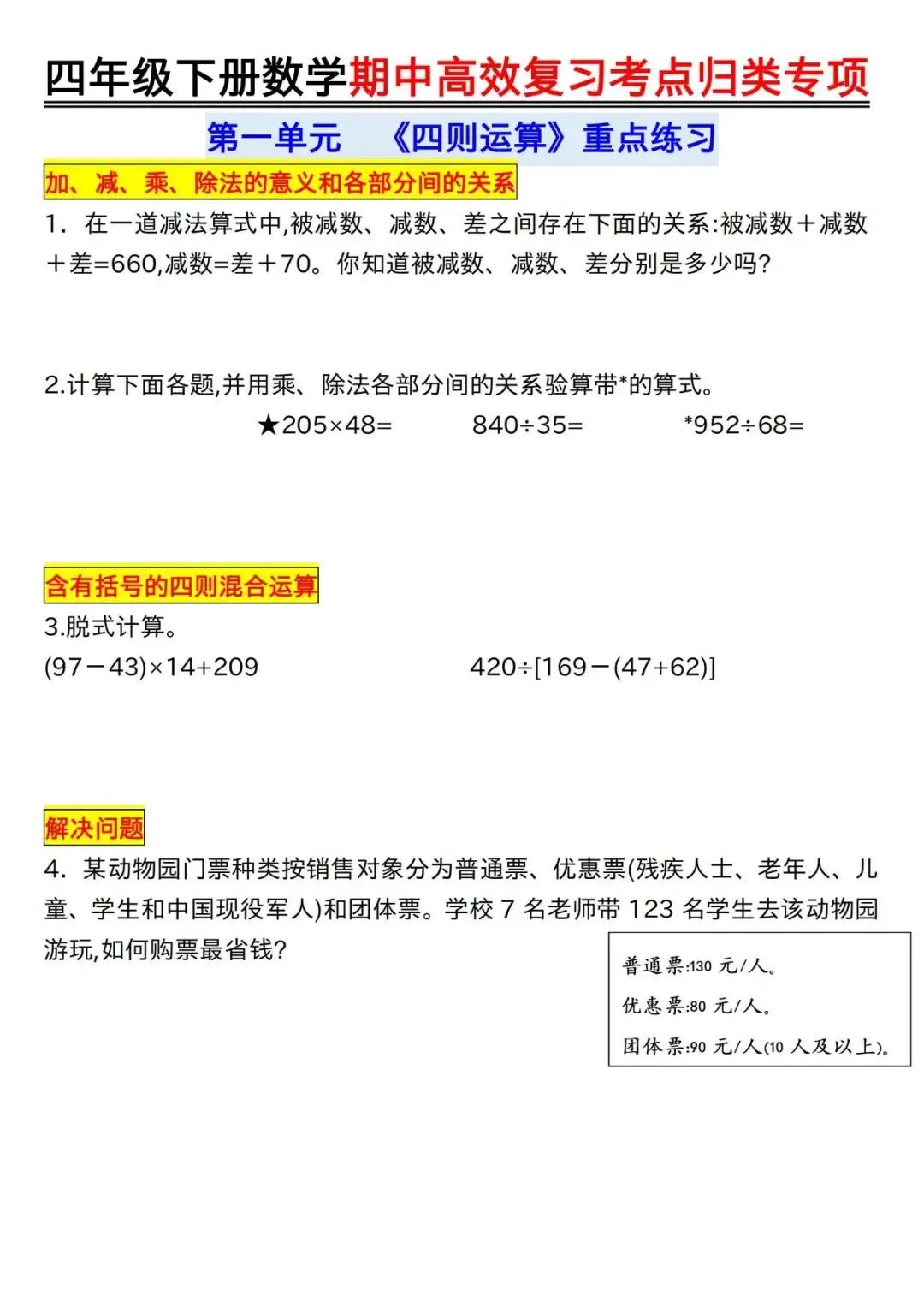 【免费资料】2026.4.14分享-四下数学【期中高效复习考点归类专项】