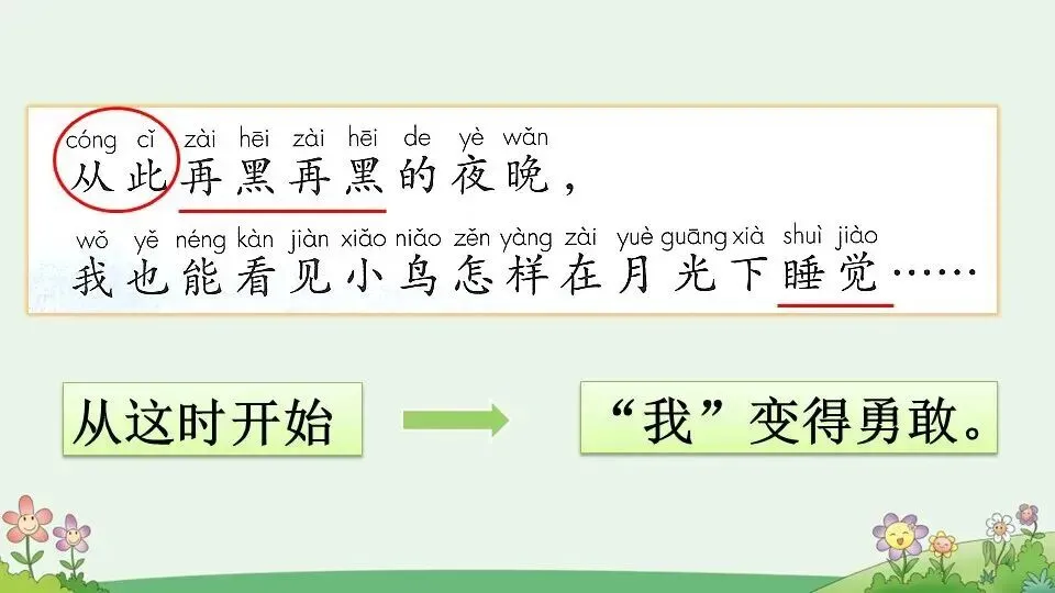 2.妈妈把勇敢的故事讲了又讲,可我一看窗外心就乱跳……“我一看到窗外心就乱跳”我还会看到什么,听到什么?