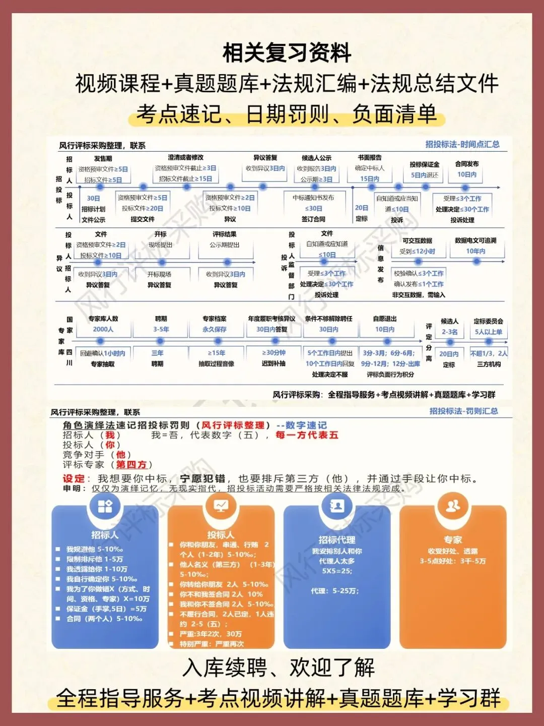 每次考试预约刚开始都会出现比较卡的情况,官方随后会处理这个情况,一般是当天下午能处理好,这次也不例外。部分老师对考试预约可能理解有误。官方实际是在一次性就放出来所有考试机位,机位比人数应该略多一些,所以其实要在一开始就预约才能预约到相对靠中后的一些时间。另外就是只能预约自己常驻地城市的考点,所以不是所有时间段都可以预约,大部分地方实际就止于1-2天考试。还是建议大家尽快预约,注意预约时间截止是4月15日17时截止(务必注意不是到晚上,没有预约上就只能从新入库了。)目前推荐的一个相对高效的复习思路:建议视频课程共约8个小时(包括知识点串讲60-70分约4小时、新法规串讲10-20分约2小时、时间罚则负面行为速记10-20分约1.5小时)+真题题库约400题,可能有考试接近的题目和重点题库覆盖90%考点。以上内容能完成80%左右应该就能通过考试。对应【模拟考试】能在80分以上,基本能保证通过。上一次考试通过率在95%以上,相信这次如果能完成复习,也基本问题不大。完成2026年新增视频课程(共8小时左右)及讲义知道考试重点(其余视频课程群公告选看);【视频课程】结合讲义来看,可以看今年新增的这几个视频,先看补充4-考点串讲。2026年补充视频(包括了90%考点):2026-补充1视频:风行四川综合库2026年新法规及考点讲解2026-补充2视频:招投标法时间线、罚则、负面行为汇总讲解-视频2026-补充3视频:争议题目交流讲解2026-补充4直播:四川综合库考点串讲、考试例题讲解(可以先看这个)视频课程讲义:考点总结、速记,时间、罚则、负面清单速记真题题库约400题,可能有考试接近的题目,重点题库覆盖90%考点。以上内容能完成80%左右应该就能通过考试。对应【模拟考试】能在80分以上,基本能保证通过。老师们如果有什么想了解的也可以私信我们,欢迎联系。