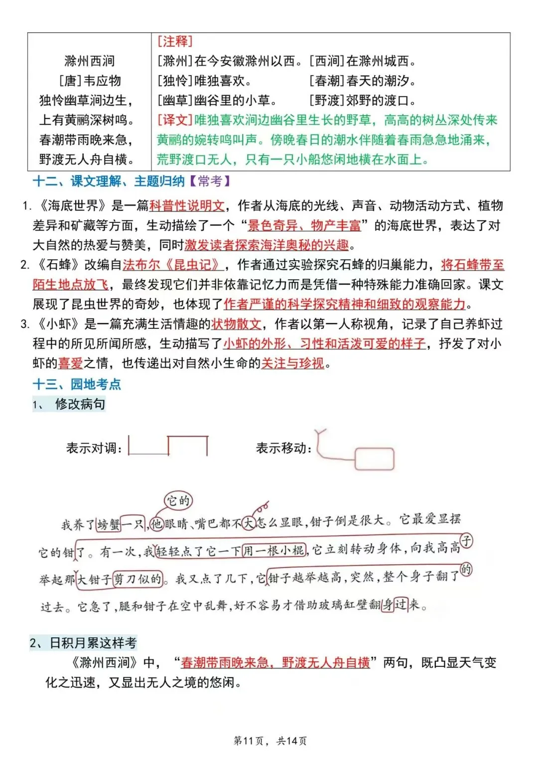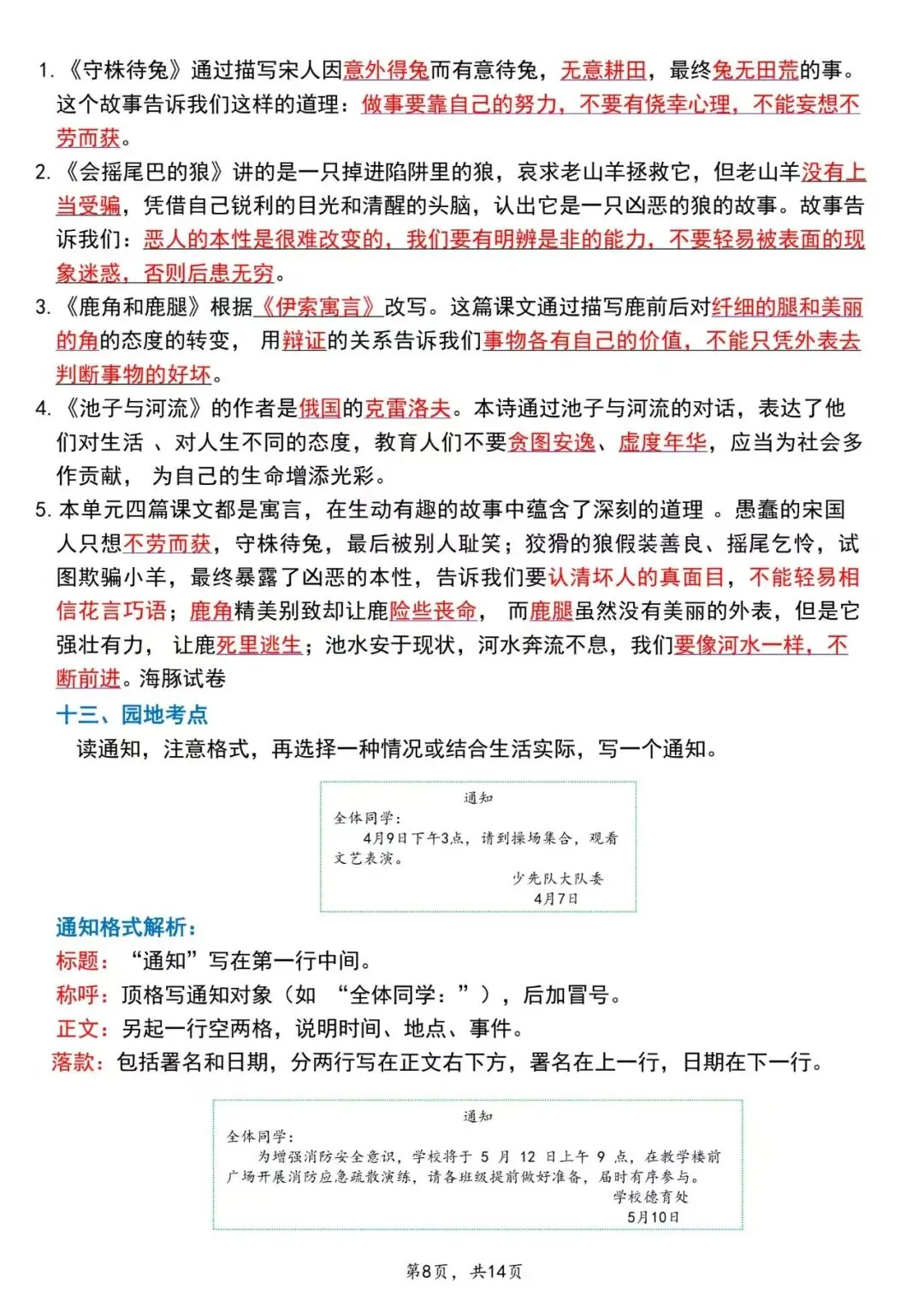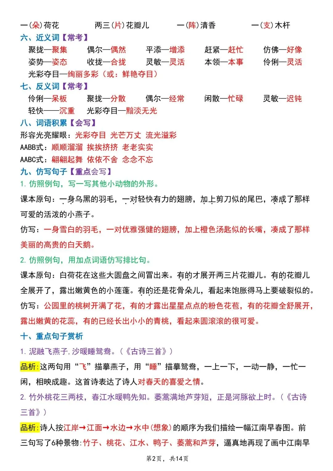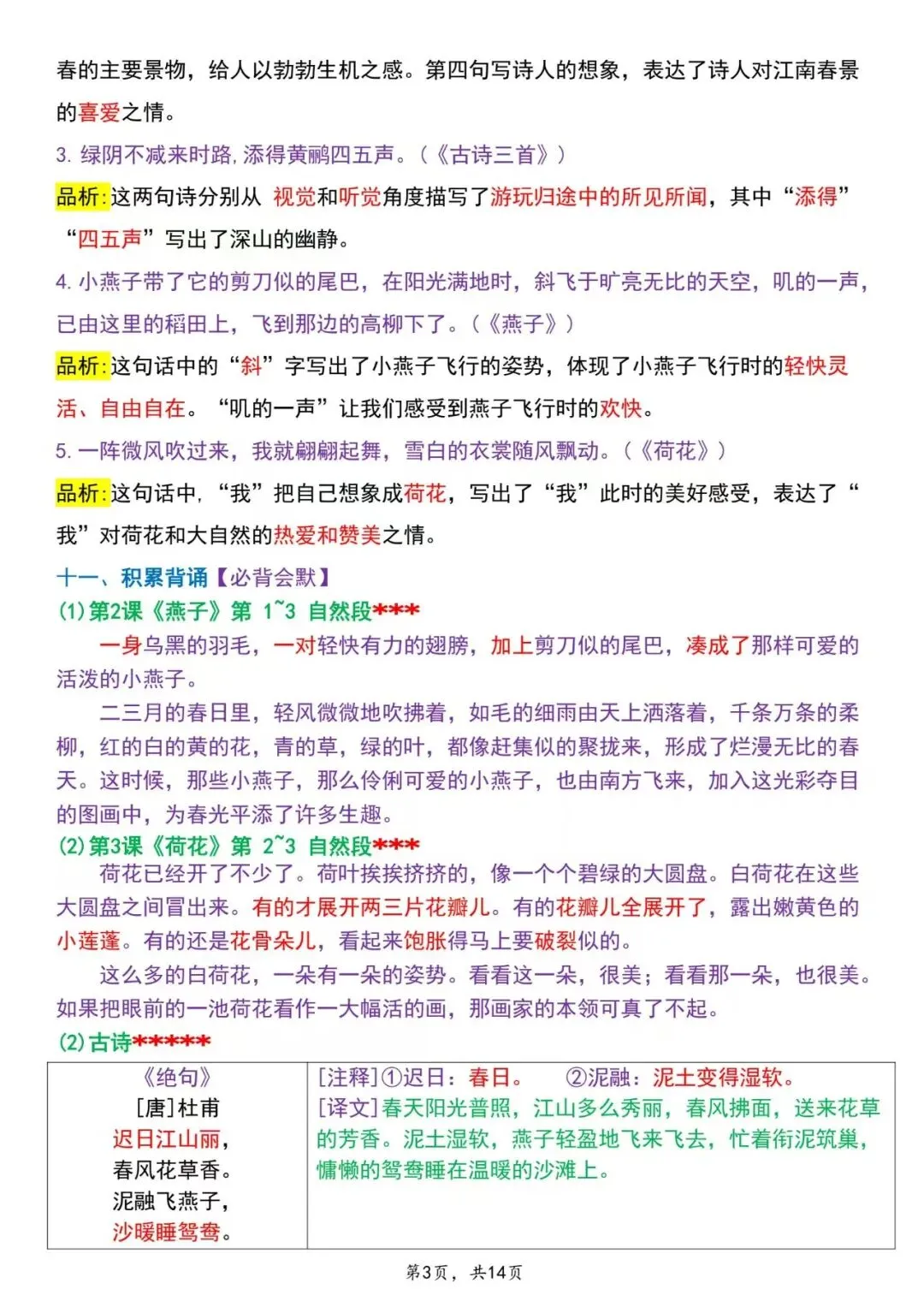 2026人教新版三年级下册语文期中复习资料(1-4单元)14页精华考点汇总 | 电子版可打印