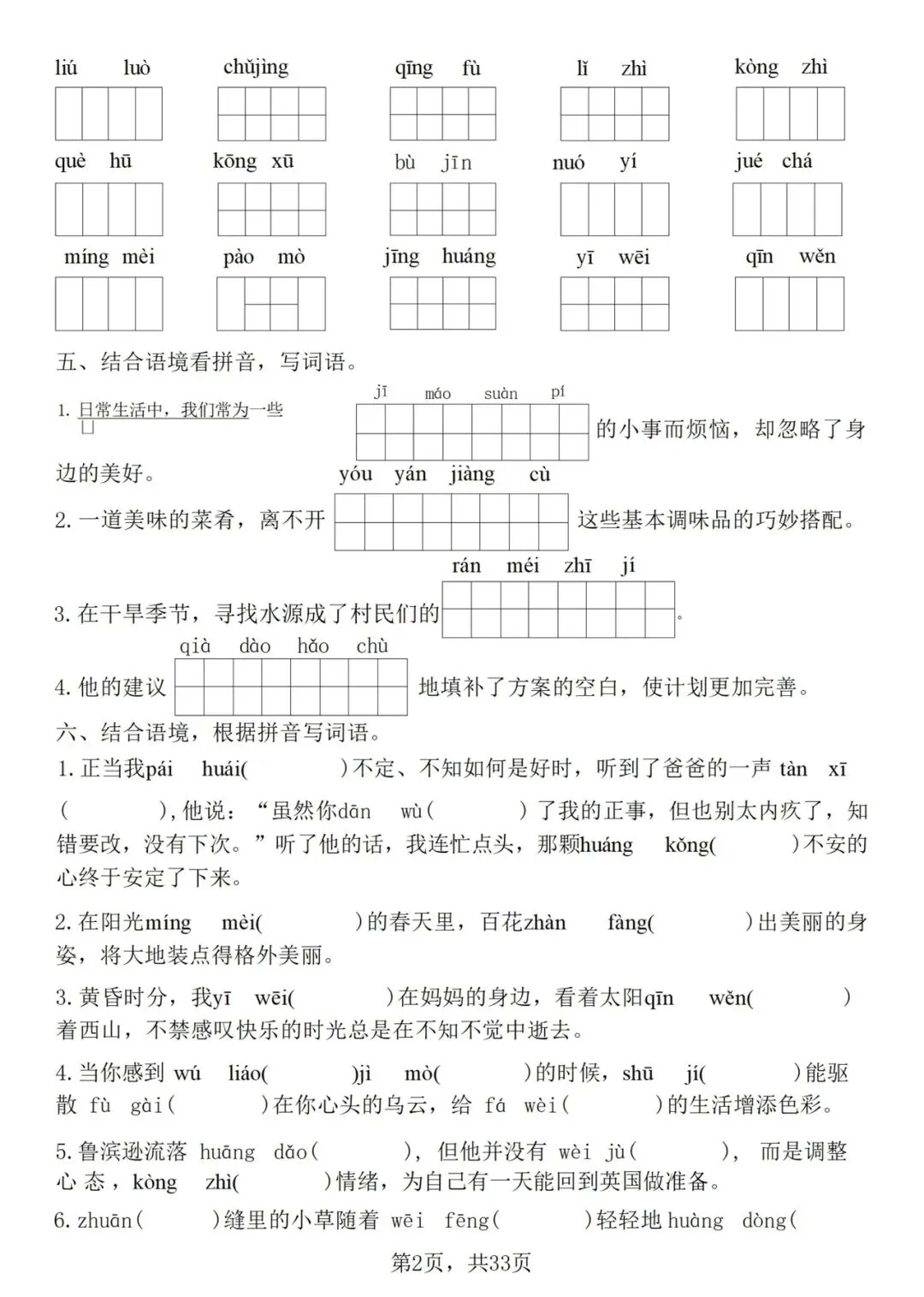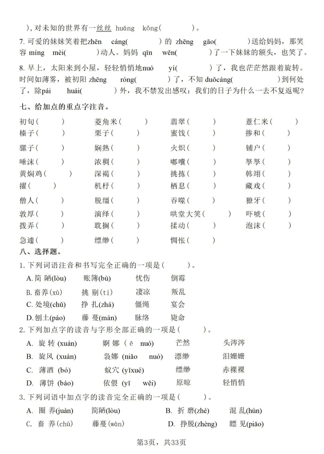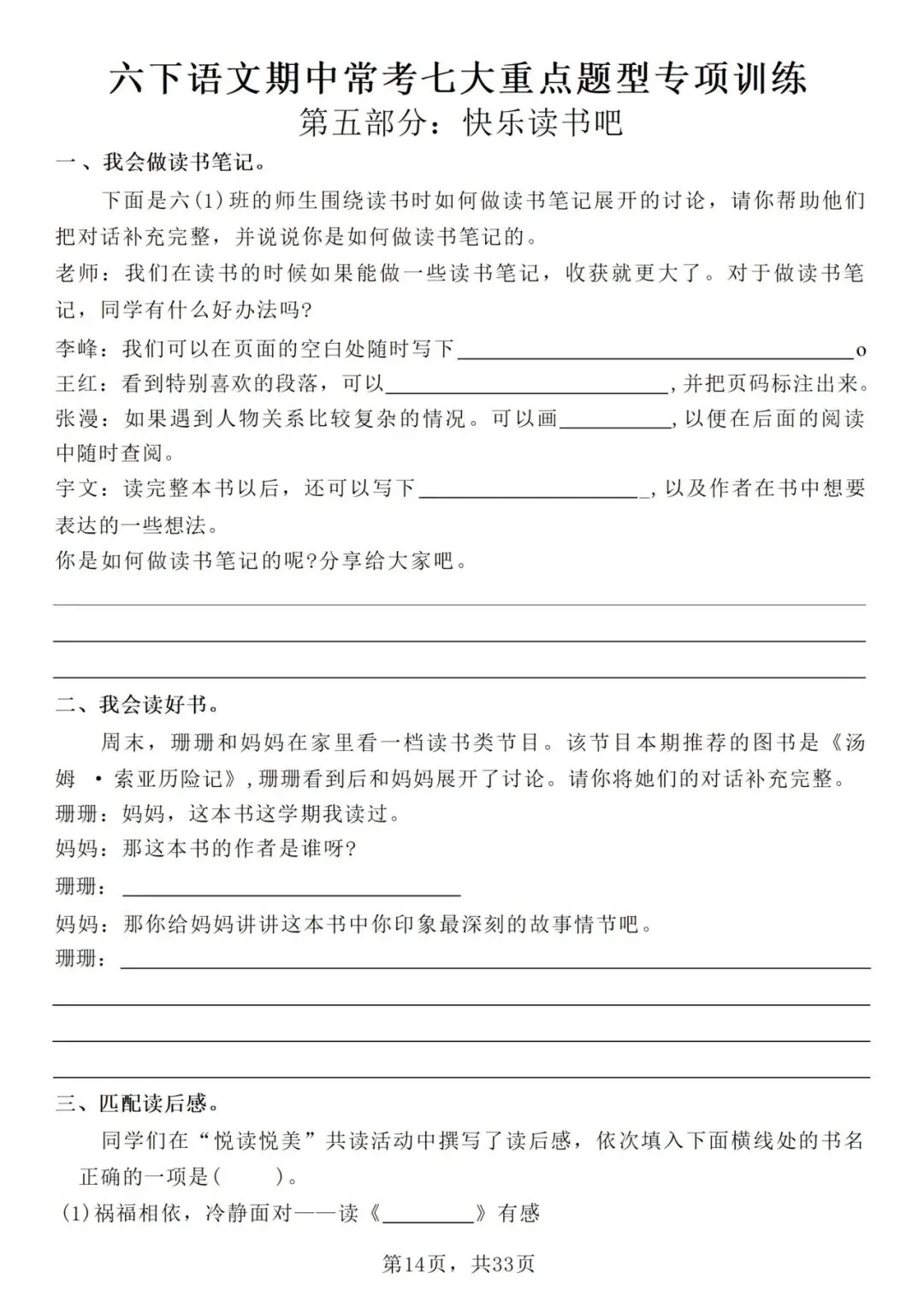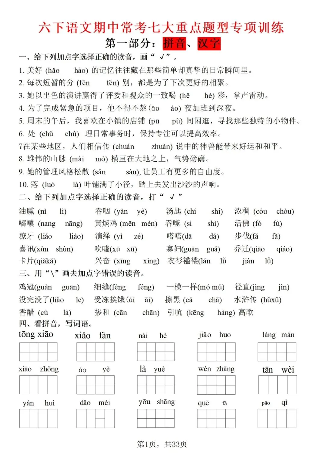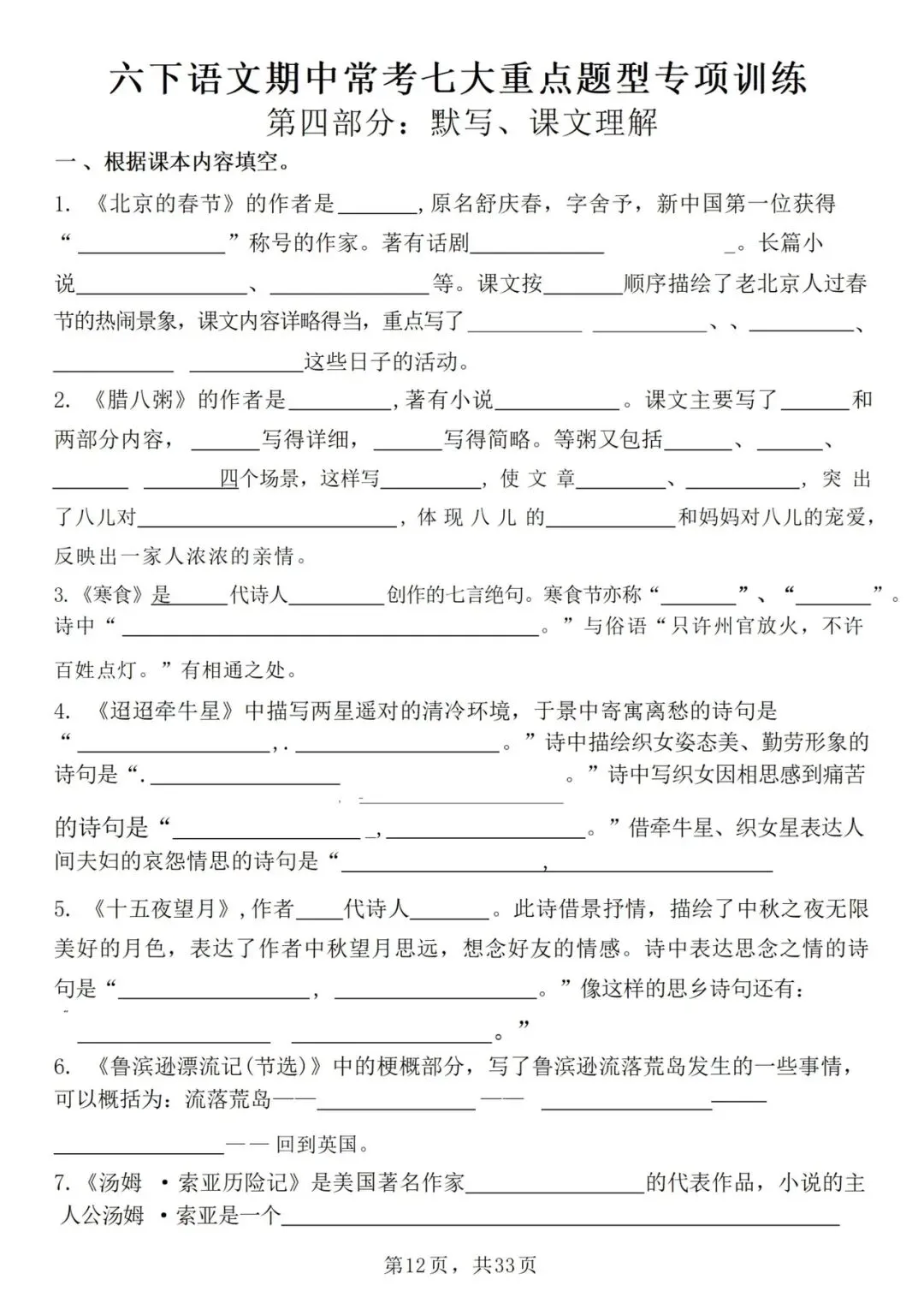 26 新六年级下册语文期中复习资料——七大重点专业训练(电子版可打印)