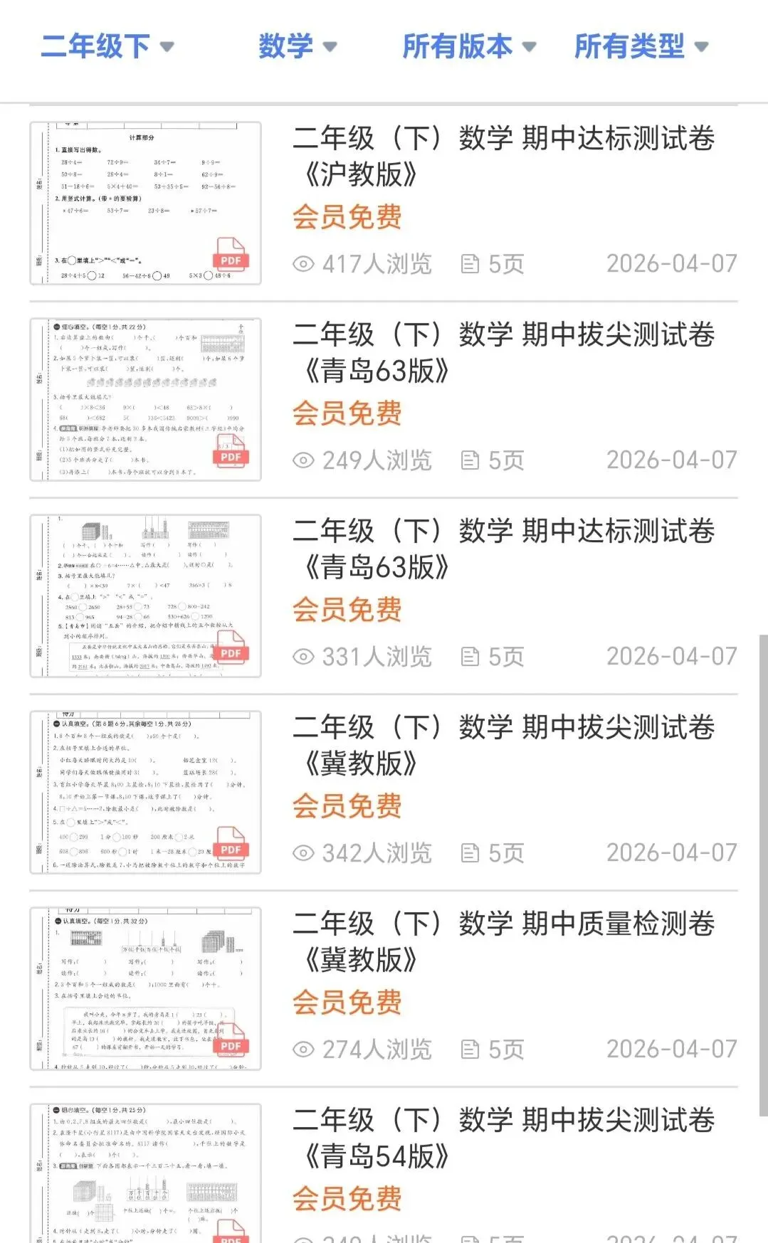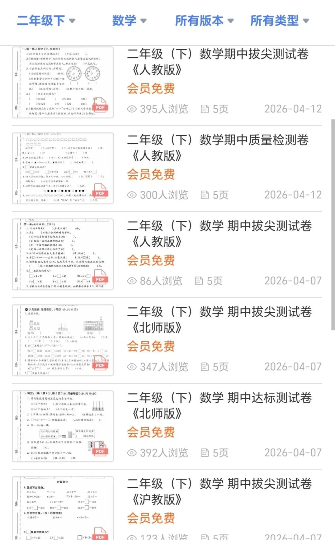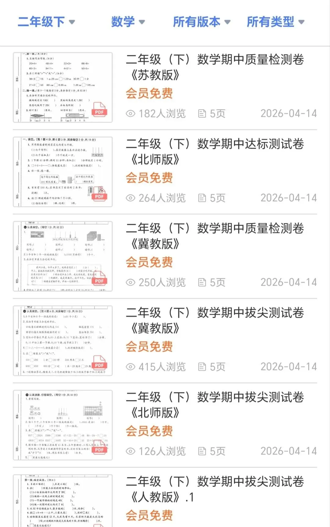 离期中考试还有10天左右,整理了二年级语文+数学(各个版本期中试卷),小程序会员免费下载,文档形式,一键下载,今天打印出来,晚上孩子就能写。