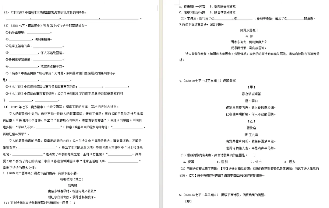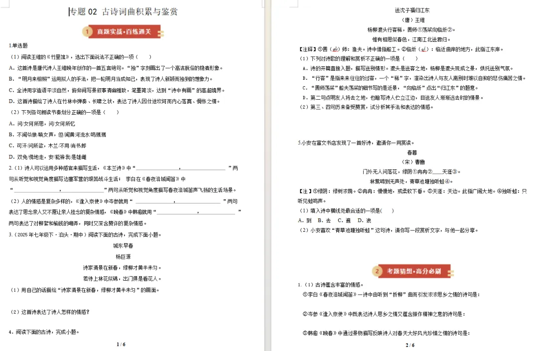 2026七下语文期中复习资料包